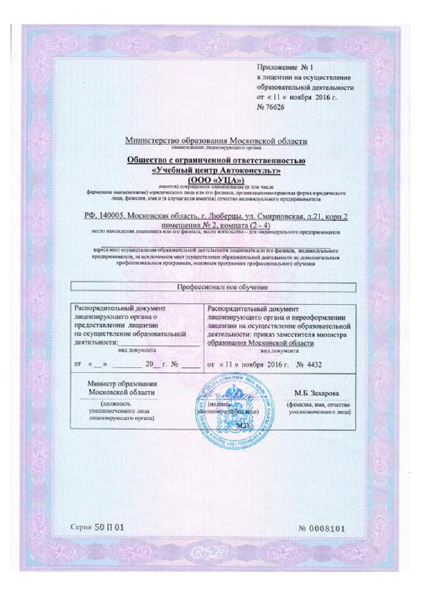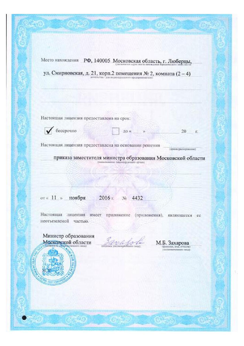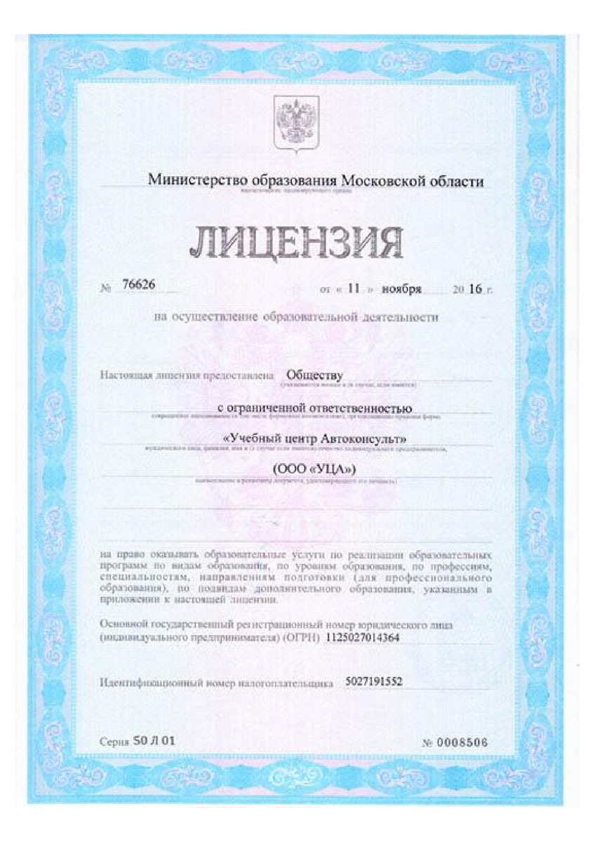 Лицензия на право осуществления образовательной деятельности