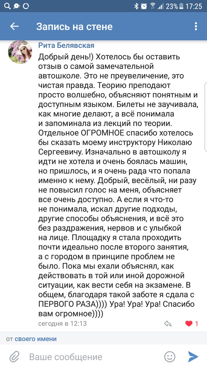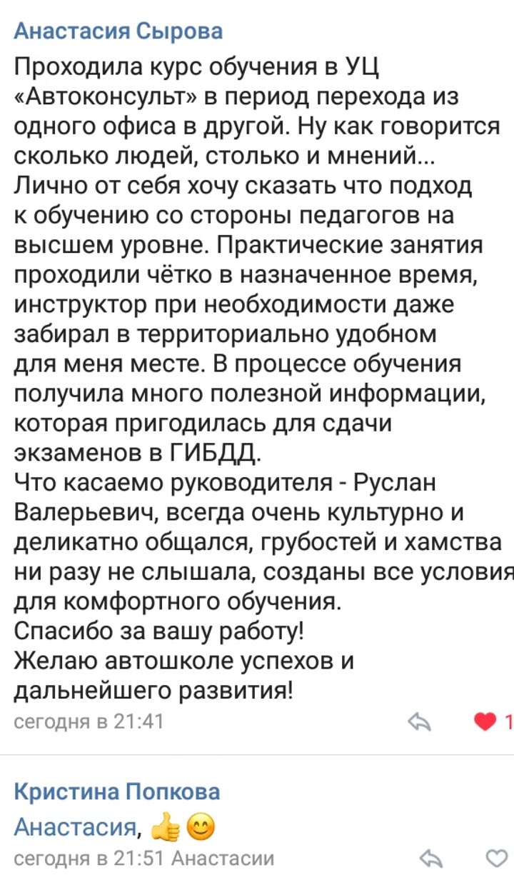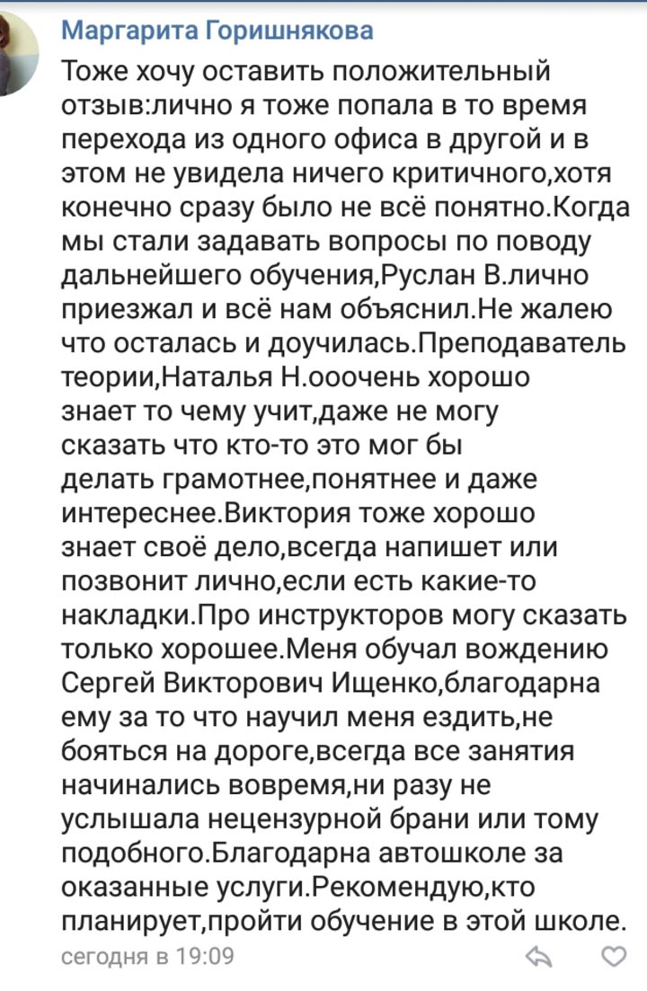 Все отзывы о нашей автошколе написаны реальными людьми, нашими учениками, которые обучались в разное время в люберецком и раменском филиалах.